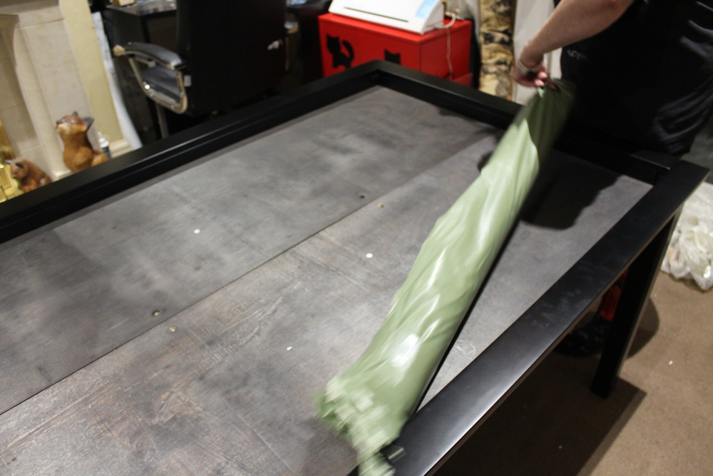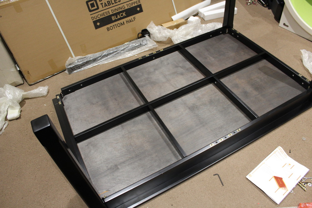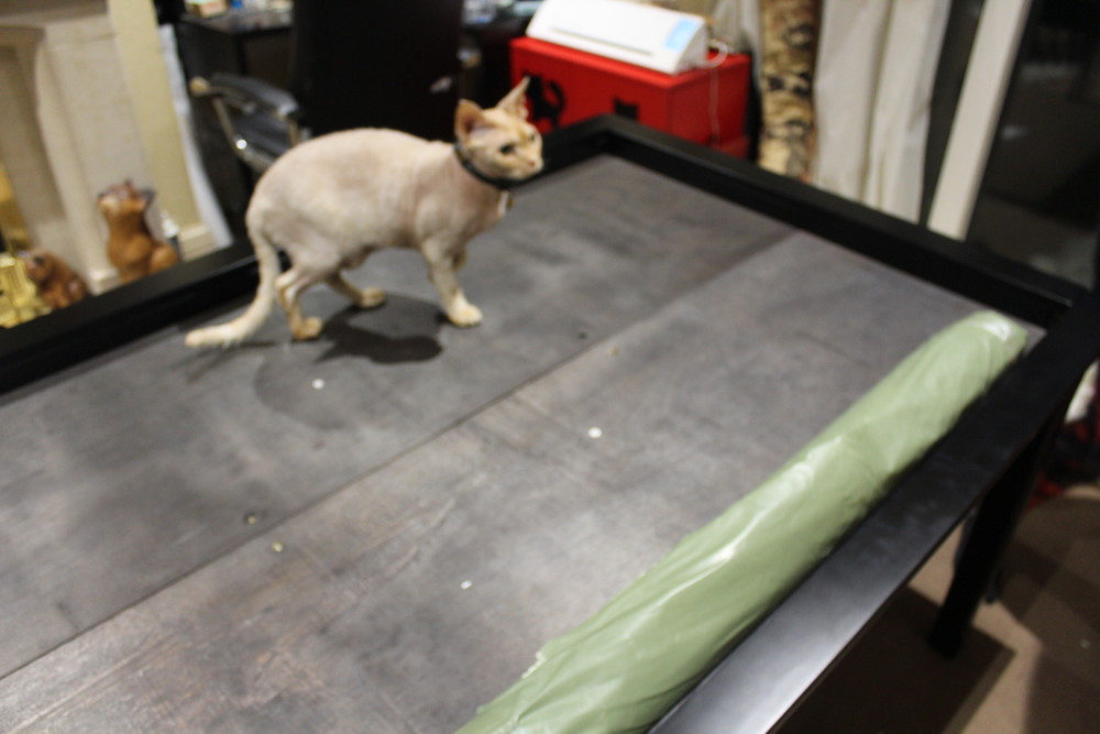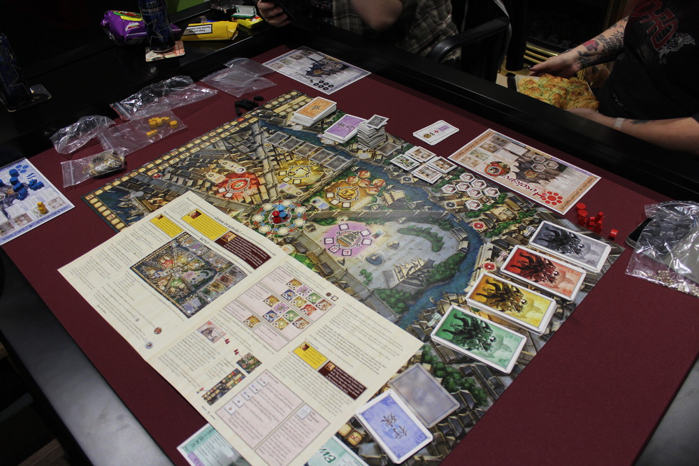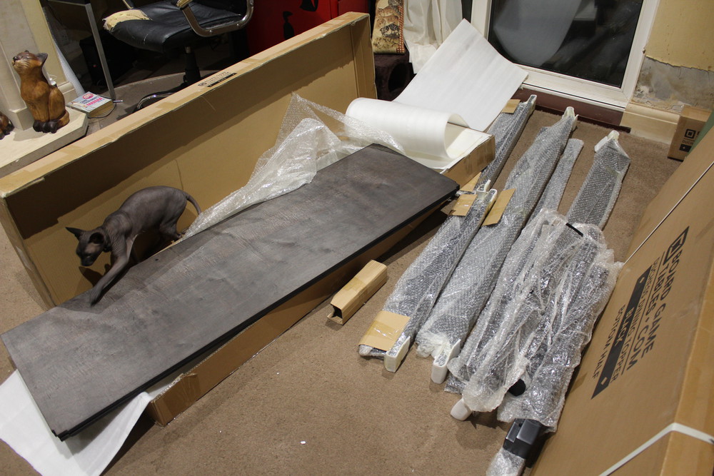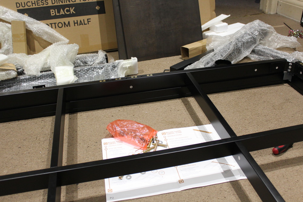 We recently received our Duchess from BoardGamesTables.com's Kickstarter, while it was initially scheduled for delivery in February after many months of logistics and planning we received ours two days before leaving for Spiel in Essen. Rather than having to come back to building it we decided to go ahead and spend our regular Monday night gaming building her highness with a little help from the furless babies. We were done with enough time to play Yedo, result.